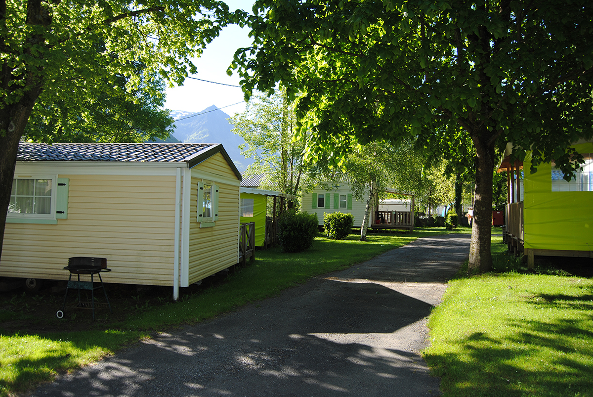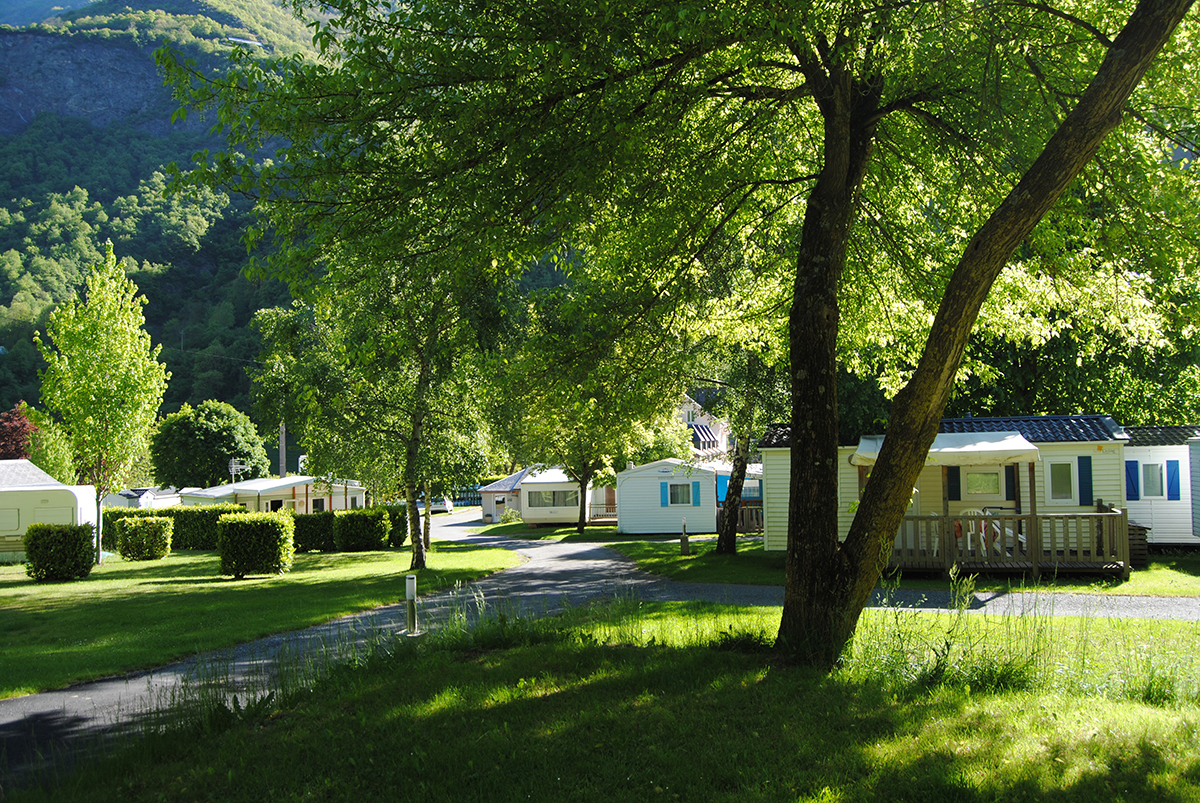 Mobil-homes à la location, emplacements résidentiels, ilots de verdure pour la toile de tente ou la caravane, espaces camping-car.